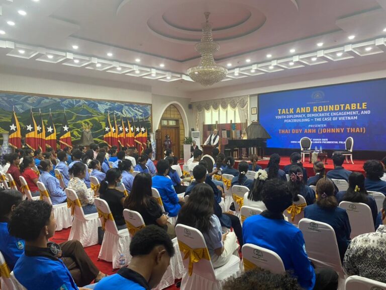 DILI, STLTIMORLESTE.com – Prezidente Republika (PR), Jose Ramos Horta simu jornalista ou juventude vietname ba meza redonda kona-ba diplomasia juventude envolvimentu demokratiku no harii dame