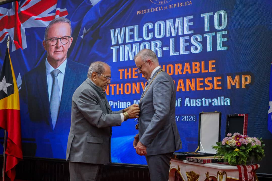 DILI, STLTIMORLESTE.com – Prezidente Republika (PR), Jose Ramos Horta kondekora Primeiru Ministru Australia Anthony Albanese ho medalha Grande Colar Ordem de Timor Leste, nuudar rekonhesimentu