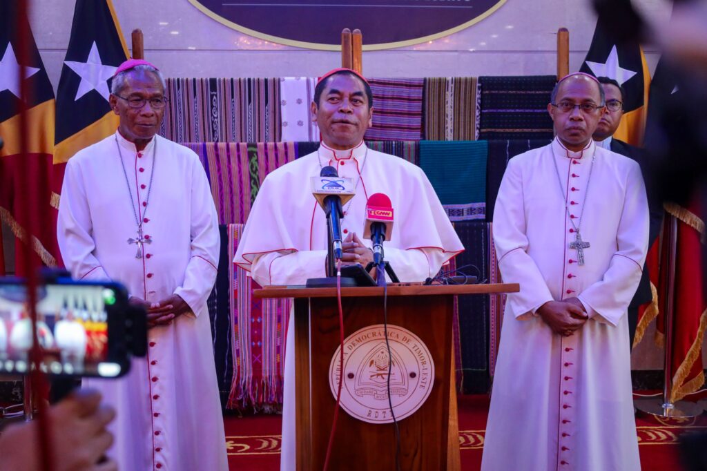 Dom Virgilio Cardeal do Carmo da Silva, SDB hatoo liafuan nee ba jornalista bainhira remata halo enkontru ho Prezidente Republika Jose Ramos Horta, iha Palasiu Prezidensial Nicolau Lobato, Bairru Pite, Tersa (16/12/2025).