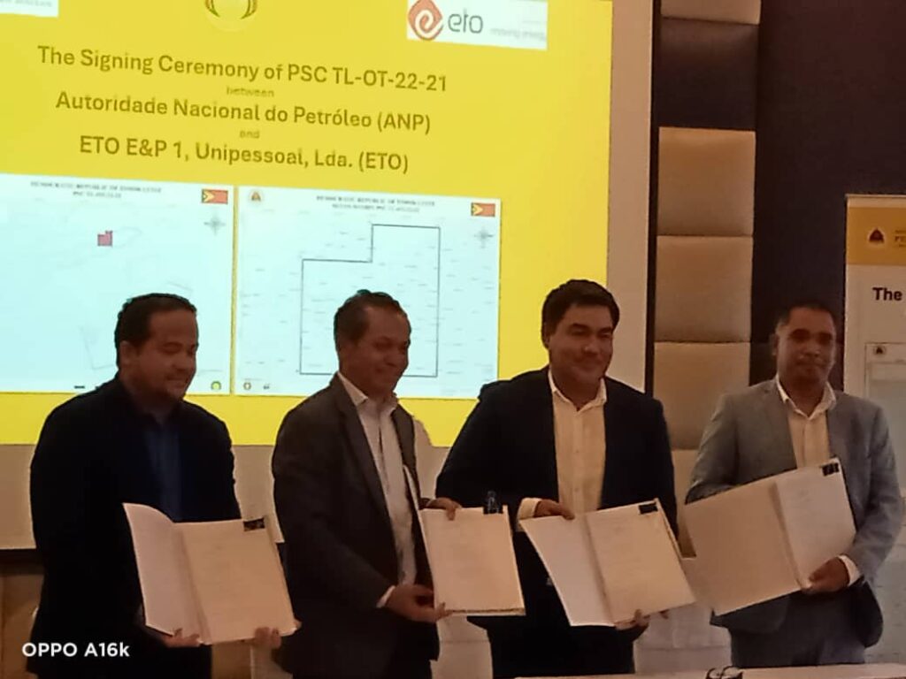 DILI, STLTIMORLESTE.com – Autoridade Nasional Petroleu (ANP) reprezenta husi Ministeriu Petroleu no Rekursu Minerais (MPRM), asina kontratu ho Empreza Esperansa Timor Oan (ETO), kontratu Fahe Produsaun (PSC) ba Bloku B petroleu no gas iha Munisipiu Baukau no Vikeke.