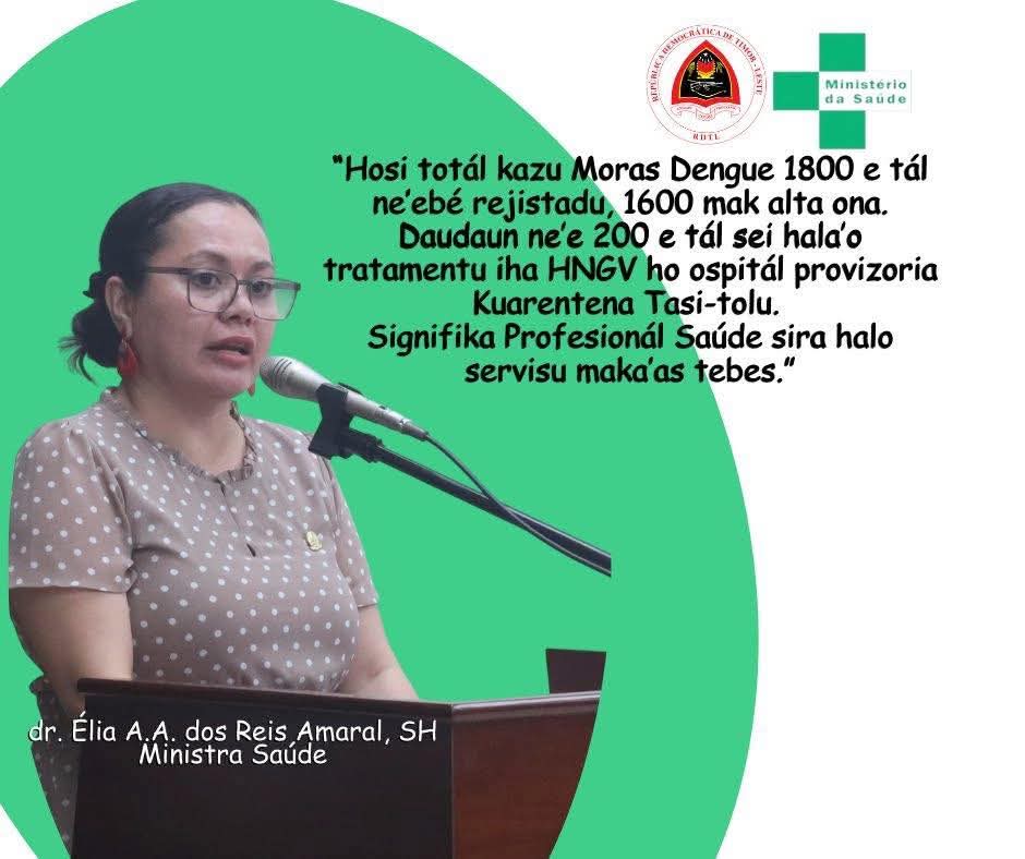 DILI, STLTIMORLESTE.com – Ministra Saude (MS), Elia Antonio de Araujo dos Reis Amaral hatete katak husi total moras dengue 1800 neebe rejistadu, 1600 resin mak