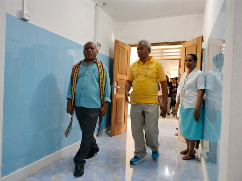 Koordenador Gabinete Apoiu Sosiedade Sivil Joaquim da Costa Freitas akompanha husi Diretor FKLD vizita sala konsulta sira iha edifisiu KLD Triloka. (Foto: STL/Tomas Reis)