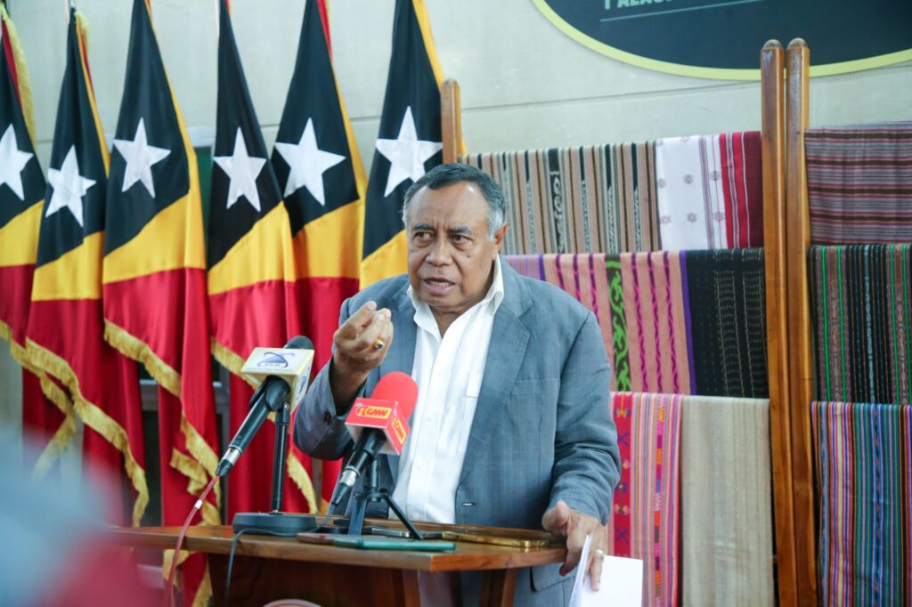 Kestaun nee hatoo husi Ministru Planeamentu no Investimentu Estratejiku (MPIE), Gastão Sousa ba jornalista sira, bainhira remata halao enkontru ho Prezidente Republika, Jose Ramos Horta, iha Palasiu Prezidensial, Nicolau Lobatu, Bairo Pite, Dili, Kuarta (22/10/2025).
