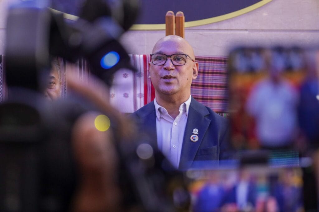 Lia hirak nee hatoo husi Ministru Juventude Desportu Arte no Kultura (MJDAK), Nelio Isaac Sarmento ba jornalista sira bainhira remata halo enkontru ho Prezidente Republika Jose Ramos Horta iha Palasiu Prezidensial Nikolao Lobato, Bairo Pite, Tersa (08/07/2025).