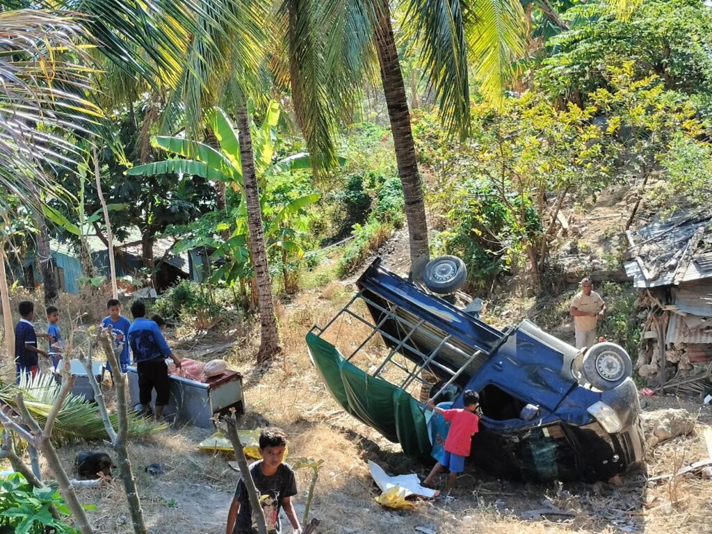 BAUKAU, STLTIMORLESTE.com – Kareta carry ho sapa matrikula B.13-354 hetan asidente halai sai husi estrada hodi monu ba rai naruk iha kruzamentu Tirilolo, Postu Administrativu Baukau Vila, rezulta ema nain 2 kanek.