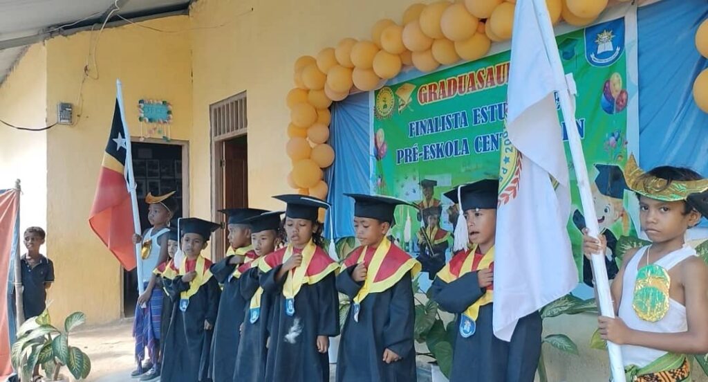 “Sira graduasaun laos tanba sira hatene numerasia no litersia, maibe bazeia ba sira nia tinan kundu sira tinan 6 atu pasa ba tinan 7 sira tenke termina sira nia prosesu aprendizajem pre-eskolar,” hateten Levi ba jornalista sira, hafoin remata seremonia graduasaun dala 6 ba estudante sira, iha pre-eskolar Sentru Eden Samaguai, Kinta (13/11/2025).